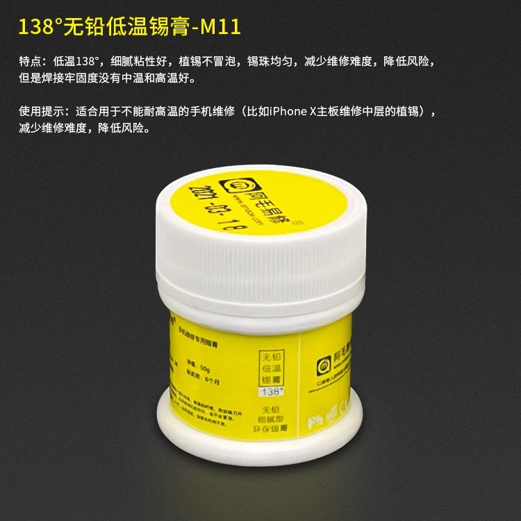 AMAOE M11 PASTA DE SOLDADURA SIN PLOMO SOLDABLE MICRONS 25-45UM PESO 50G BAJA TEMP 138º